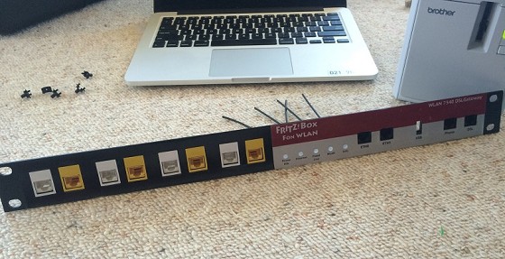 Built a new enclosure for my FritzBox so it would sit in my home rack better, half a 1U 19" space (the second half has my POE injectors), LEDs even work. Didn't bother with all the USB ports as I never really use them, same for the second telephone port.