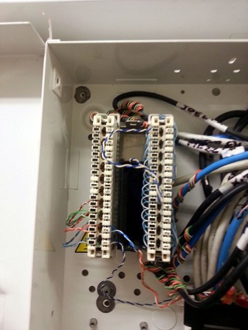 Here's the location. The splitter is sitting between the rows of connections in the top left