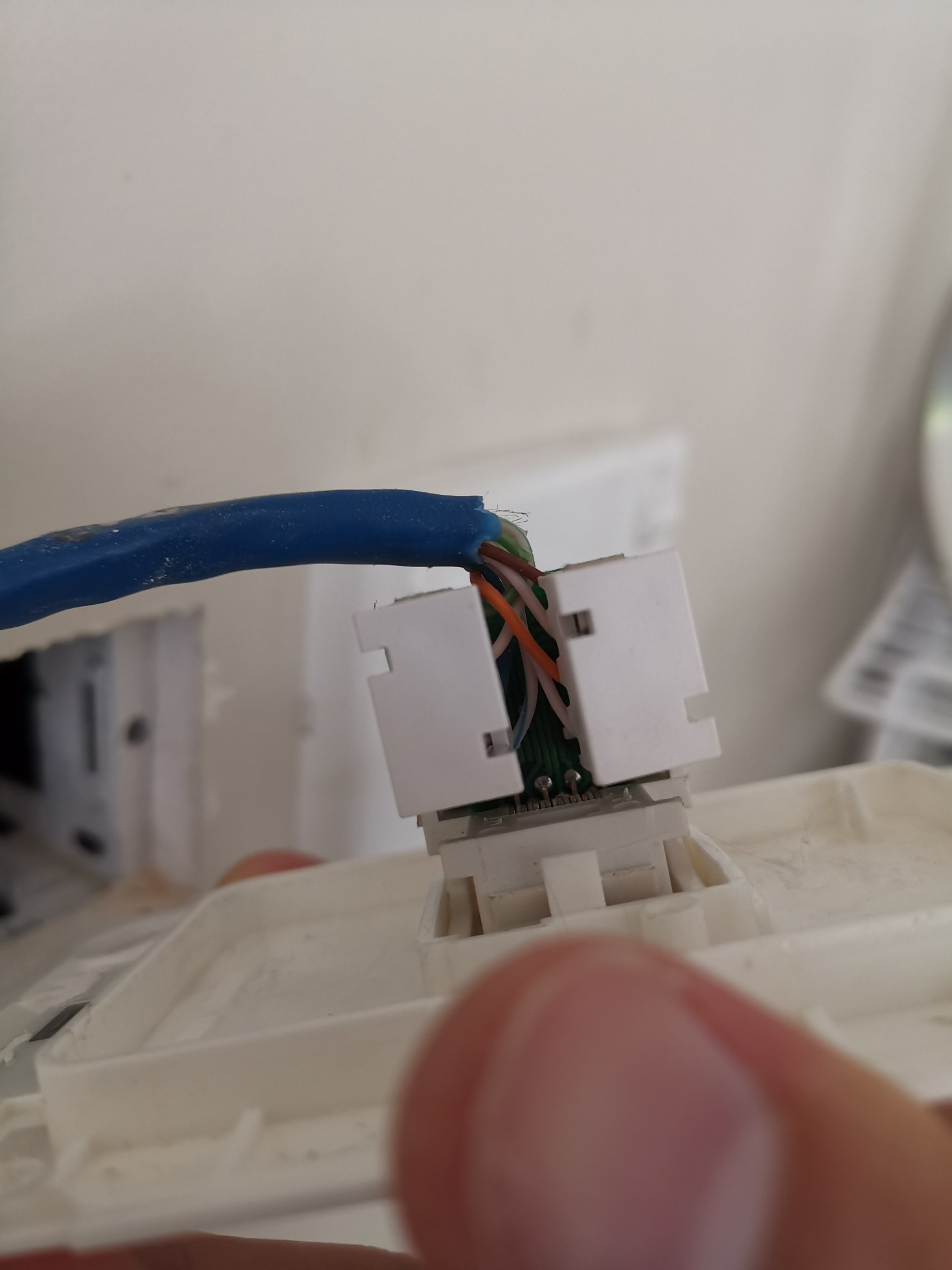 our house has this (see photo) set up from the previous owner. I just replaced the router with the one provided by bigpipe. I see there are 2 blue cables attached from the Netselect into the house, and i have 2 ethernet ports in the house, so i assume they are connected. But when i tried to plug in an ethernet cable from the ethernet port on the wall to my PC, nothing connects.