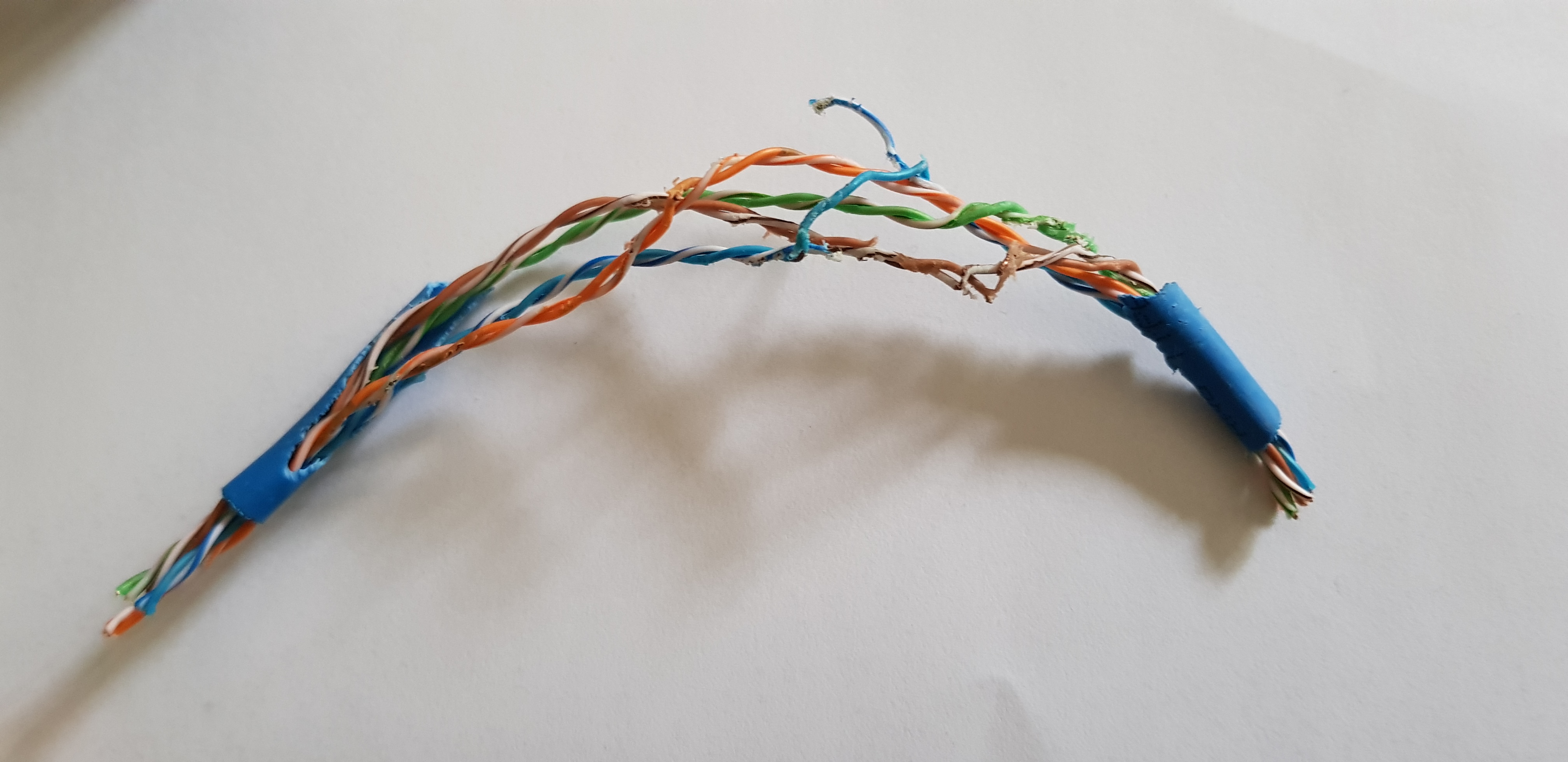 An electrician installing new wiring several weeks ago had warned us a data cable in the duct had been attacked by rodents. Didn't realise it was so bad or would fail so soon.