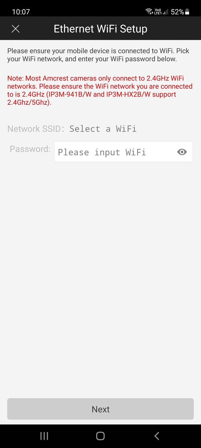 You can force your phone to connect to 2.4ghz by temporarily disabling 5ghz on your router just while setting your camera up.