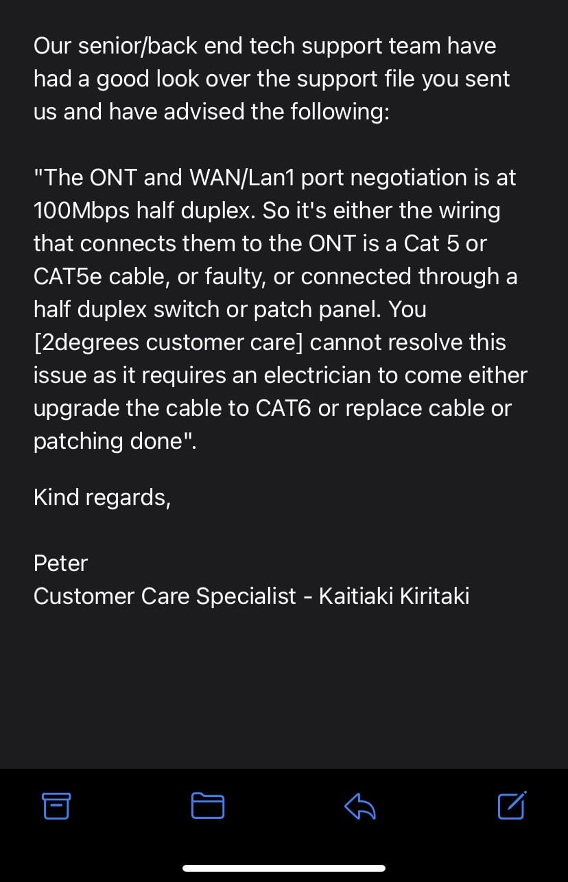 Currently we have 2Degrees internet on a “Fibre Max plan” 900/450 speeds.