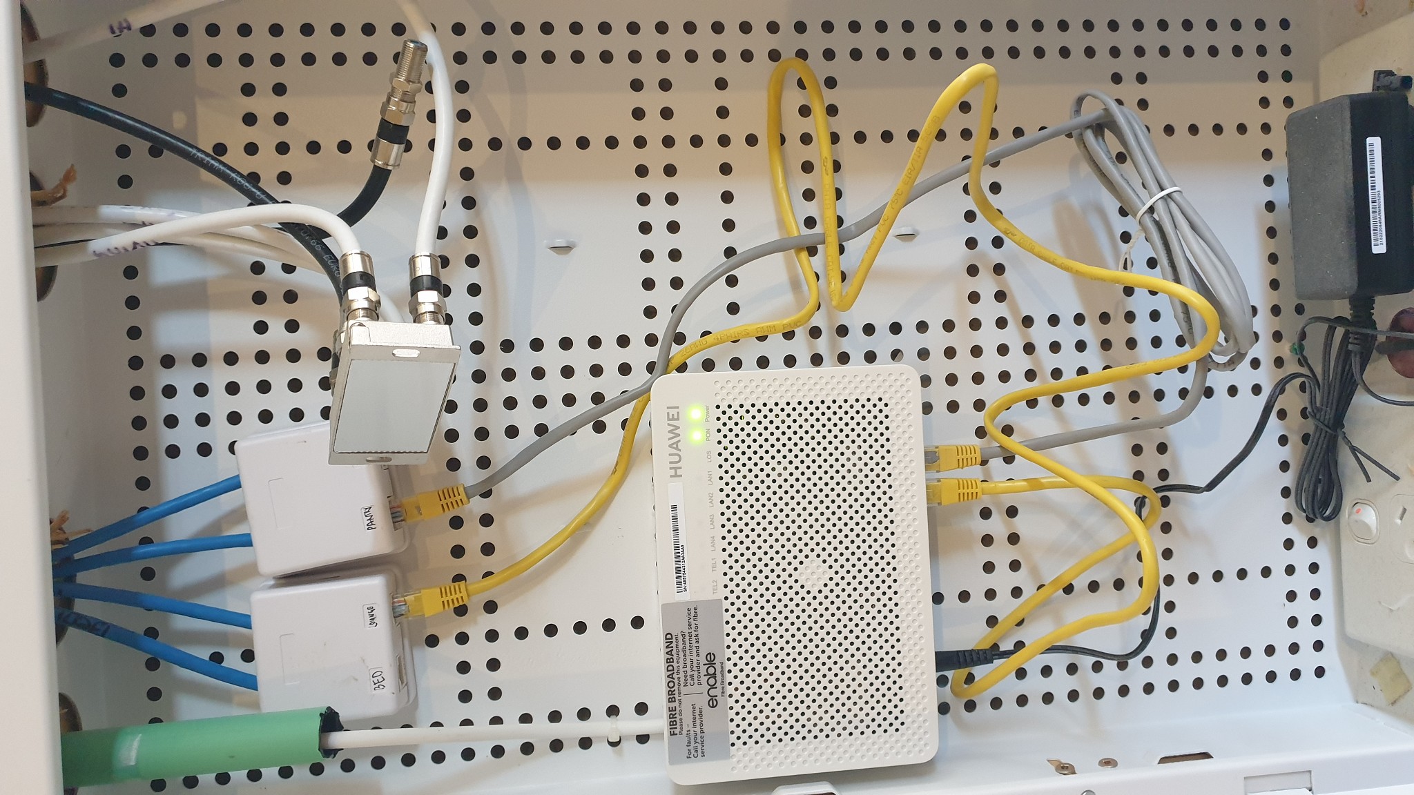 Spark Max Fibre using Mikrotik CCR1009-8G-1S-1S+, CRS125-24G-1S, Unifi UAP, U6-Pro, UAP-AC-M-Pro, Apple TV 4K (2022), Apple TV 4K (2017), iPad Air 1st gen, iPad Air 4th gen, iPhone 13, SkyNZ3151 (the white box). If it doesn't move then it's data cabled.