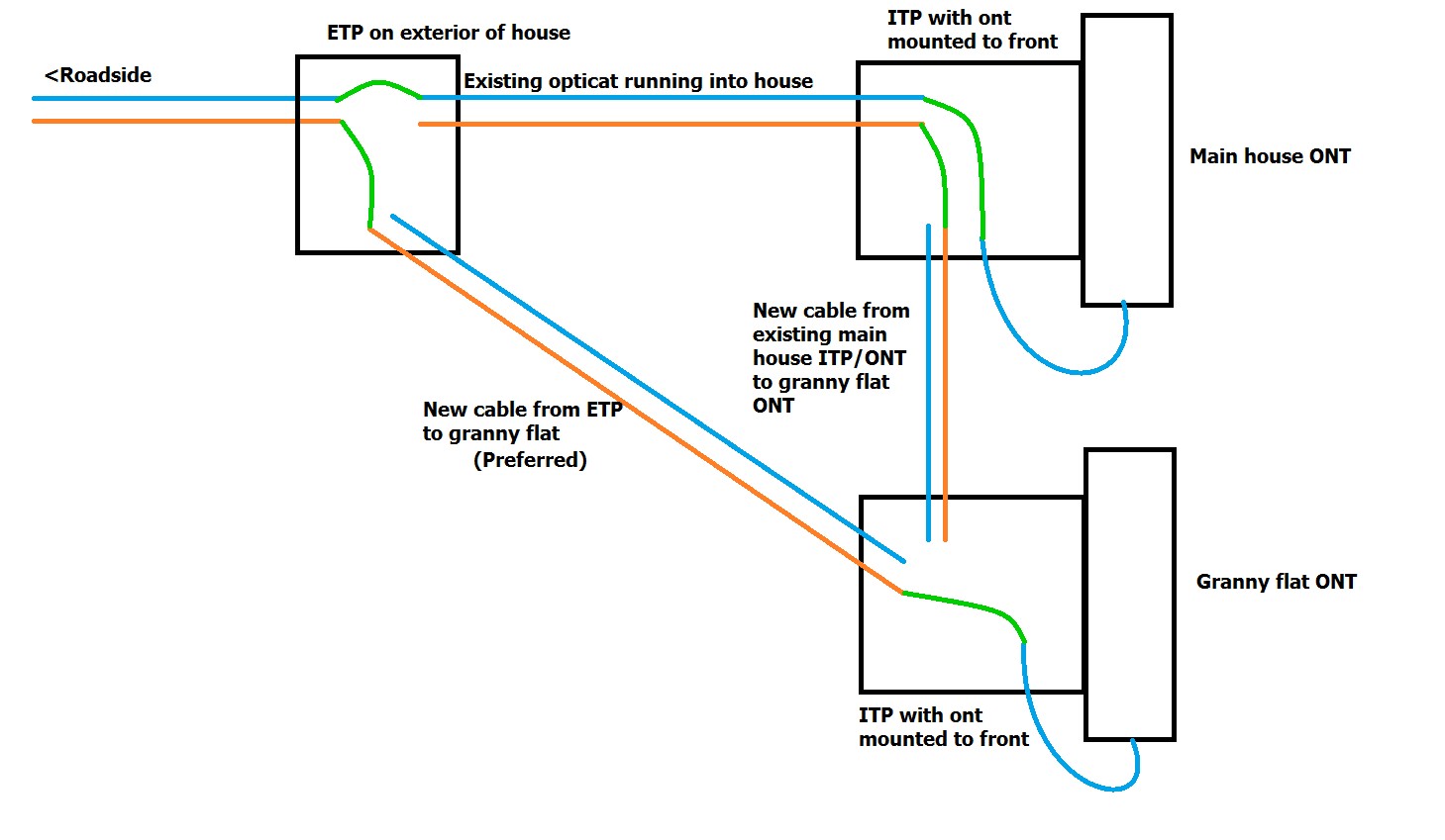 But of course the fiber connection terminates in the house, not the flat.