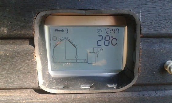This photo show the temp solar panel made from 13mm irrigation pipe.