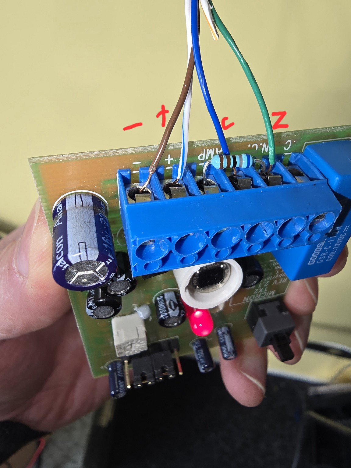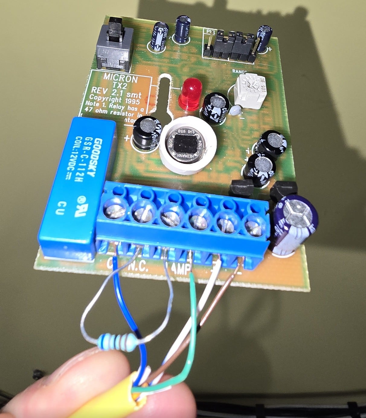 Issue 2 - When I got tired of trying to get the 4th Swan working. I removed one of the bedroom Microns and wired it directly to the panel to isolate it and try to learn how to wire it properly. At least then if I got in the roof to try to rewire the bedrooms in parallel with identifying resistors, I'd have a head start. But I couldn't get it working properly in isolation. 12v went to + and - and then zone went to N.C. and C to C. Motion seems to trigger, but the circuit inconsistently remained closed, opening periodically. I tried both the zone ID resistors in various configs (across C and N.C.) and it didn't help. The Micron has a built in 47K resistor in the relay that might be messing with the voltages. See picture.