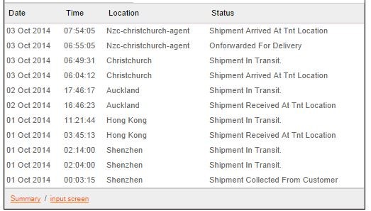 Shipment Received At Tnt Location