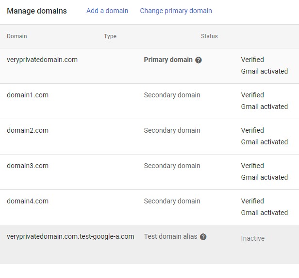 And these are the domains set up to use Google Workspace.