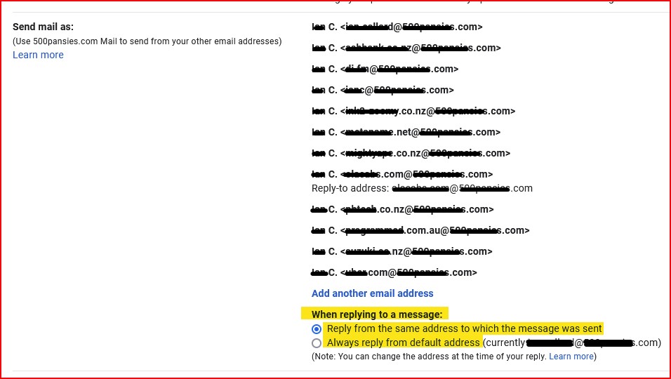 My single Google Workspace user account (mailbox) with 4 different aliases mismatching with 4 different domains. I don't use the primary account to communicate and that stays very private to me to use to log in. I set up the send-as for these aliases to send/reply emails from respective aliases.