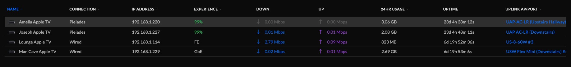 Since tvOS 15.1 dropped, I'm seeing constant network traffic of about 2Mb/s between Apple TV devices on the same network. tvOS 15.1.1 a few days later didn't change it. Anyone else seeing the same thing?