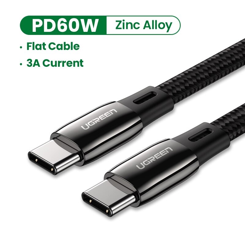 $8.35 UGREEN 1m, FLAT USB-C to USB-C / PD60W Fast Charge Cable BLACK [10975] (1)