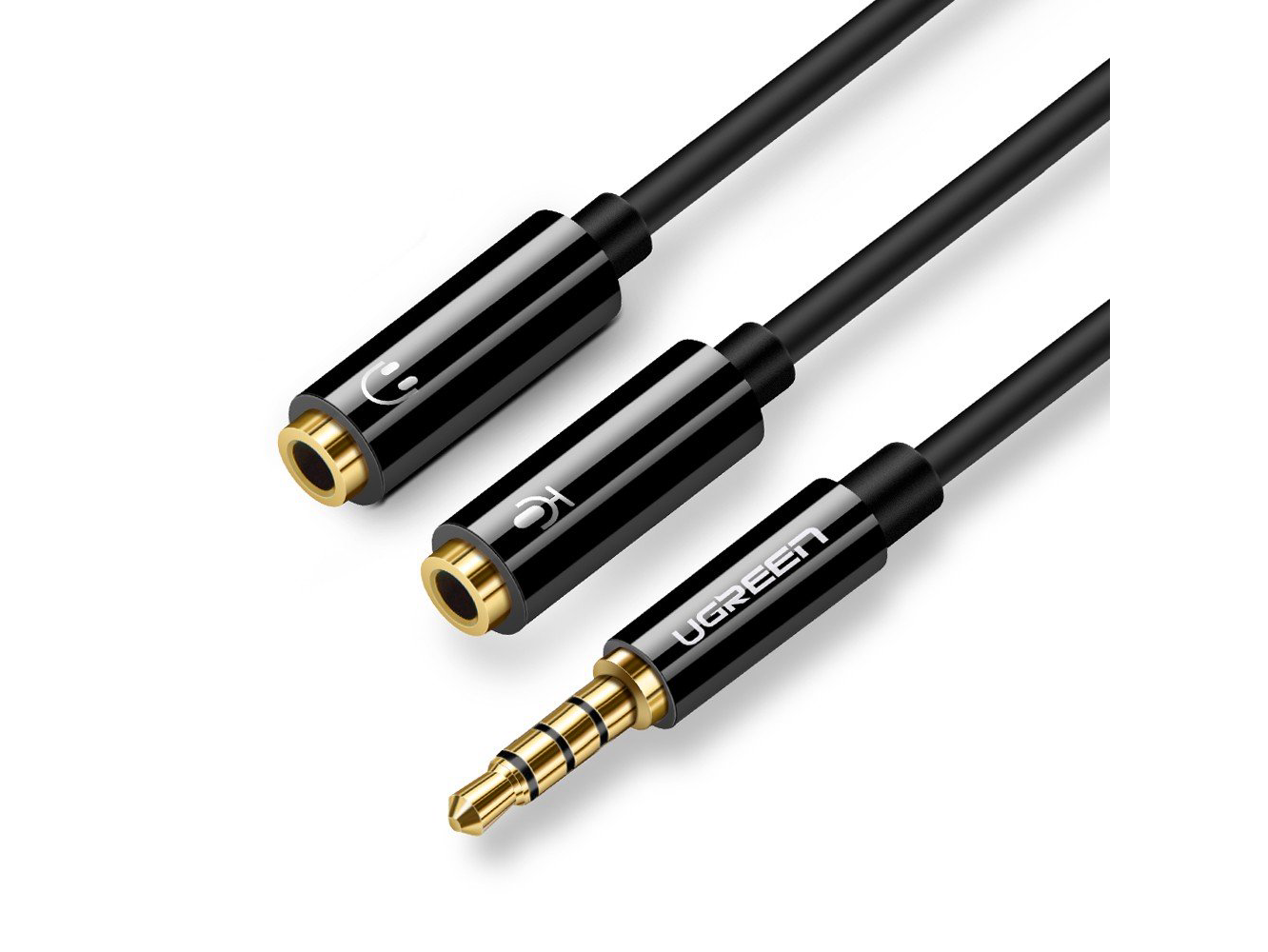 $6.77 UGREEN 3.5mm 4-pole female to 2 male 3.5mm, headset splitter adapter cable black [20899] (19)