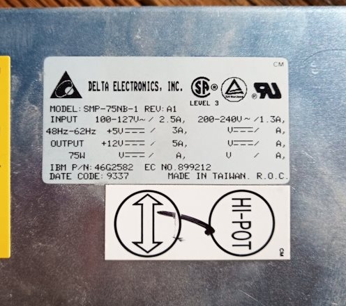 Quality IBM (Delta Electronics) 12V/5V power supply, 12V 5A, 5V 3A. Been using it to power assorted embedded devices during testing, but need to clear out some space, will toss it if no-one wants it.
