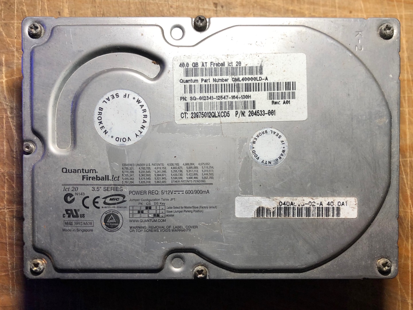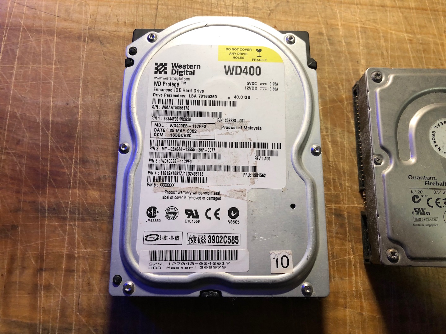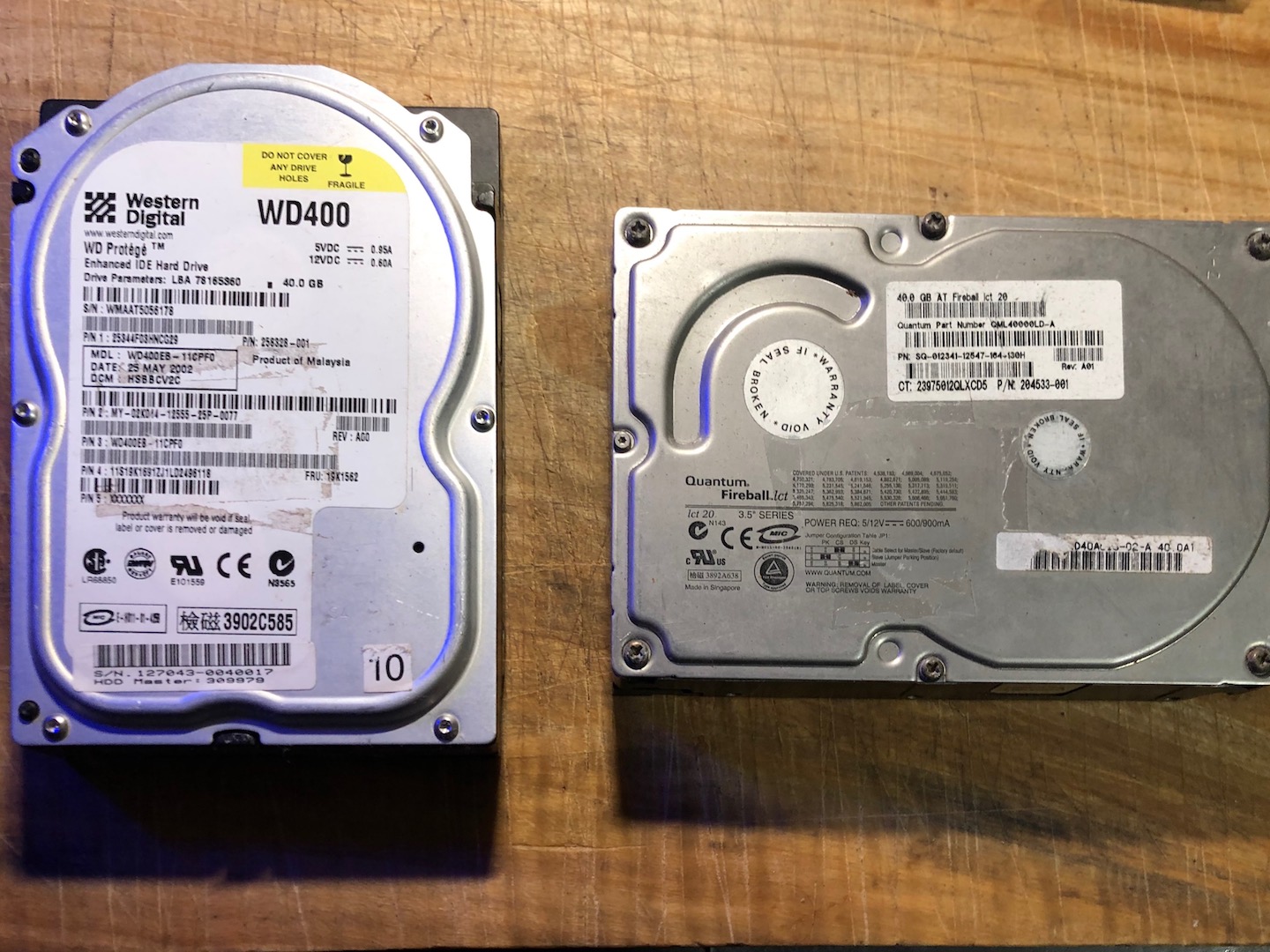 1 x Western Digital 40 GB IDE HDD + 1 x Quantum Fireball 40 GB HDD