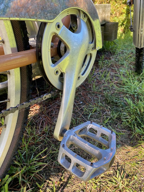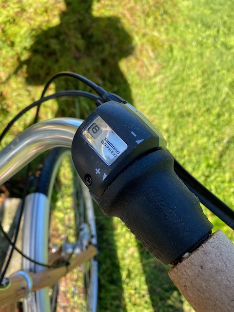 I intended it to be an adult version of a kids bike - jump on, ride, jump off without the faff that goes with modern cycling! The back-pedal brakes are (or were) common in continental Europe and so were the sealed hub brakes on the front - both were specially shipped in for this bike. The sealed 8 speed, mudguards, stand and rack make it a great all-weather commuter or wine weekender.