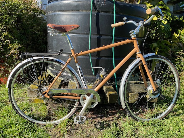 Thus I have for sale a unique, one-off bike built for me by someone in Wellington. If I am honest, I have forgotten his name, but he was a cycle mechanic who set up a home business custom building bikes to order. He moved on after a few years but what we have here was entirely hand assembled to order for me from parts sourced for me.
