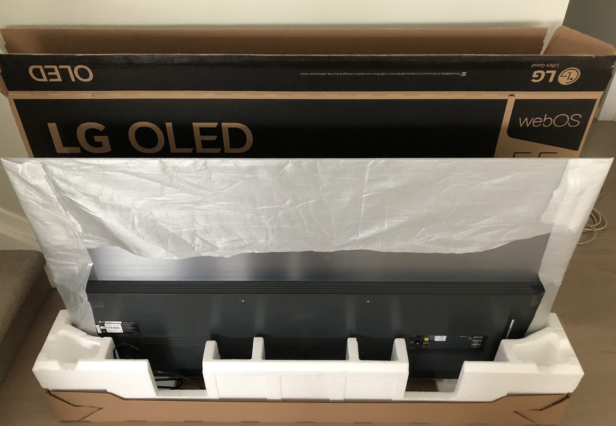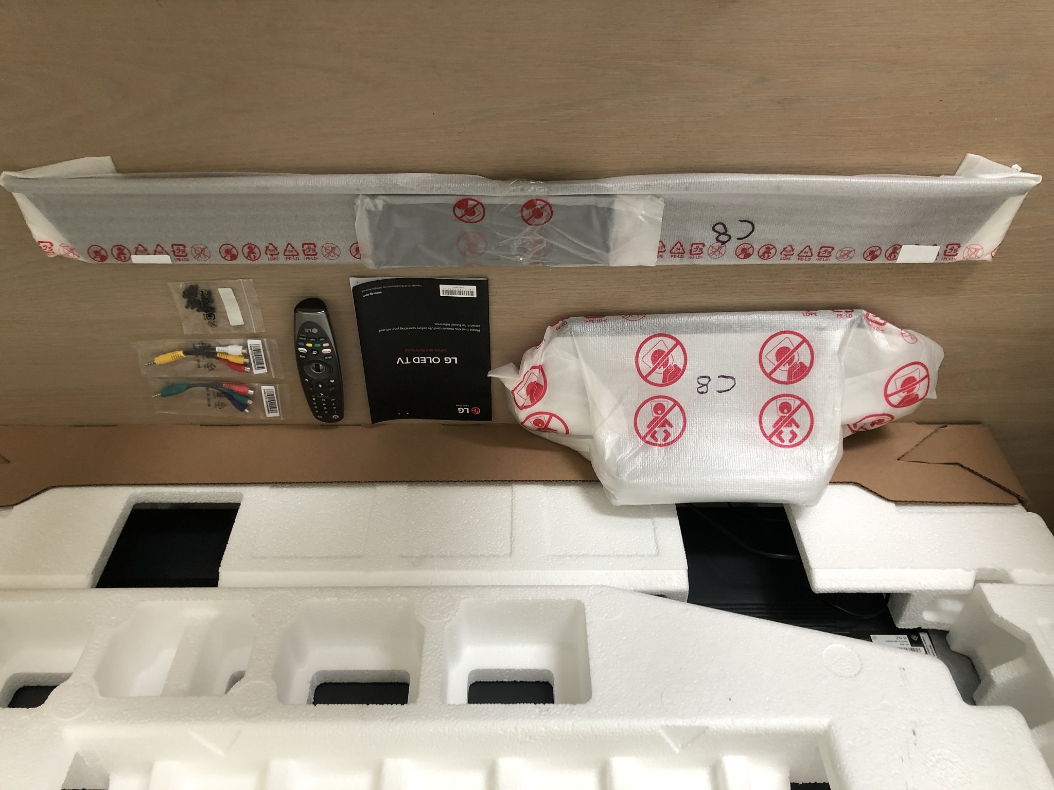 It has been wall-mounted from new - the two components of the optional stand are still in their original LG wrapping. Has been put into full LG carton with protective moulded polystyrene etc - so it is easy and safe to transport.