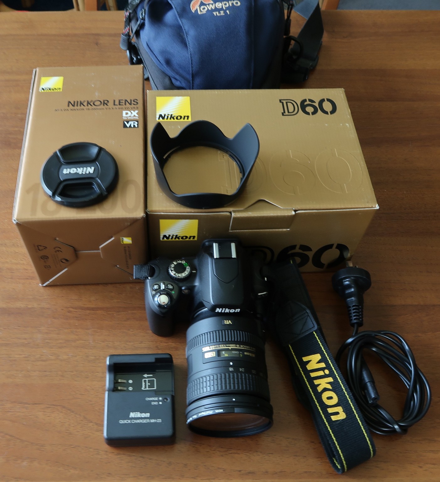Nikon D60 - used, shutter counter 27922 (56% of shutter life) - couple of times showed error on the screen do not know why. With original packaging.