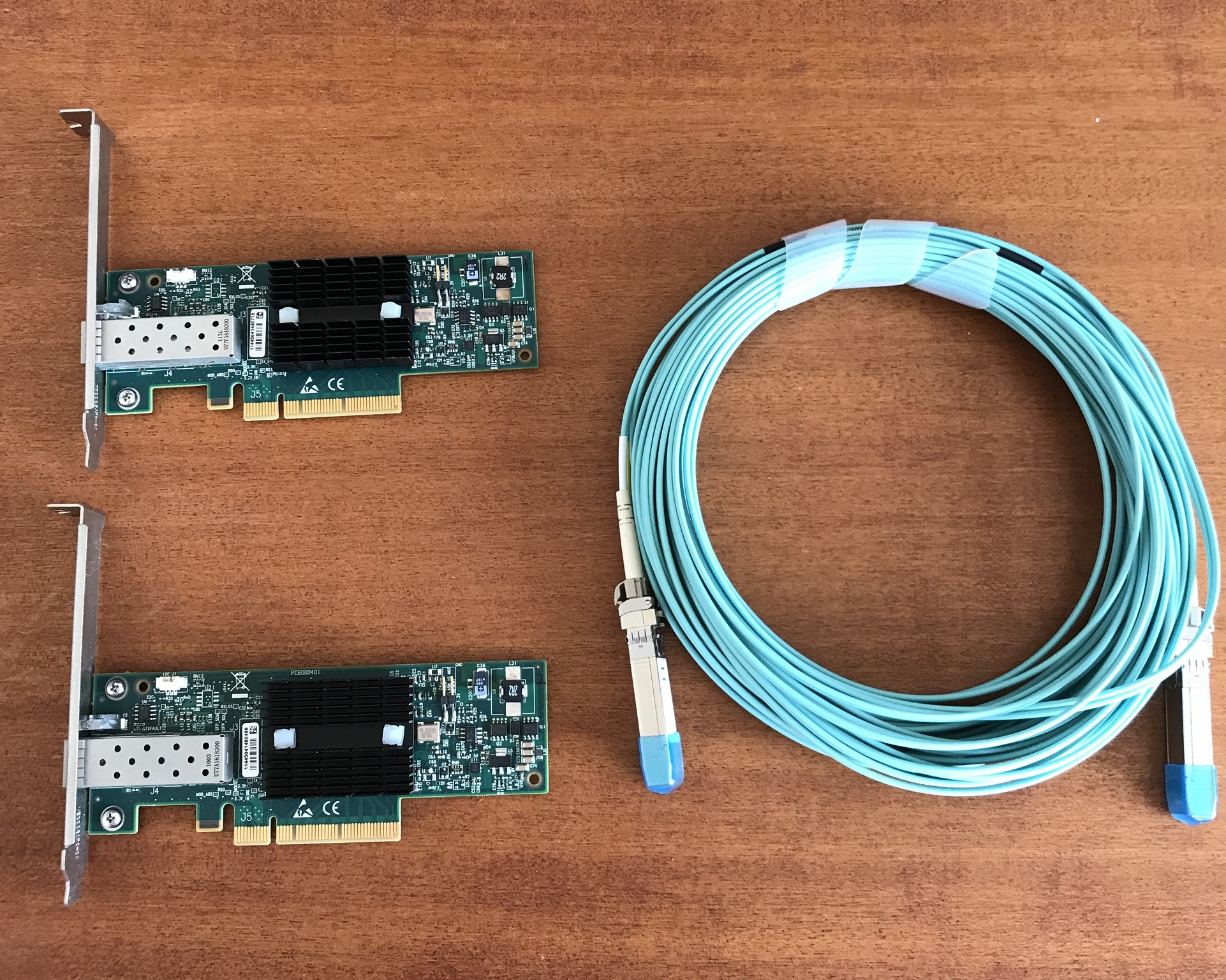 Asking price for the lot is $150, and gives you a simple way to achieve 10 gig networking between two machines, or you can use them in combination with the Mikrotik switch I have for sale here.