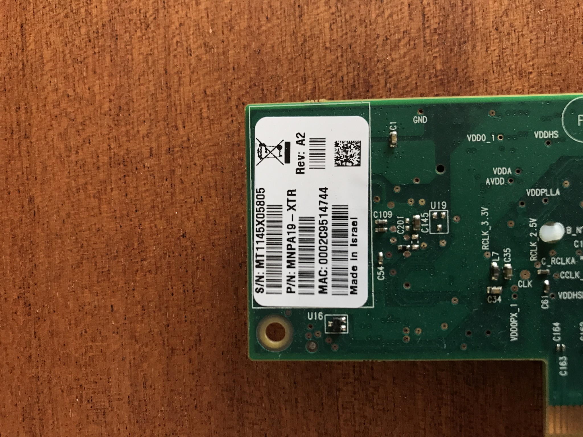 Two Mellanox/Nvidia ConnectX-2 10GbE single SFP+ PCIe network adapter cards. Model No: MNPA19-XTR.
