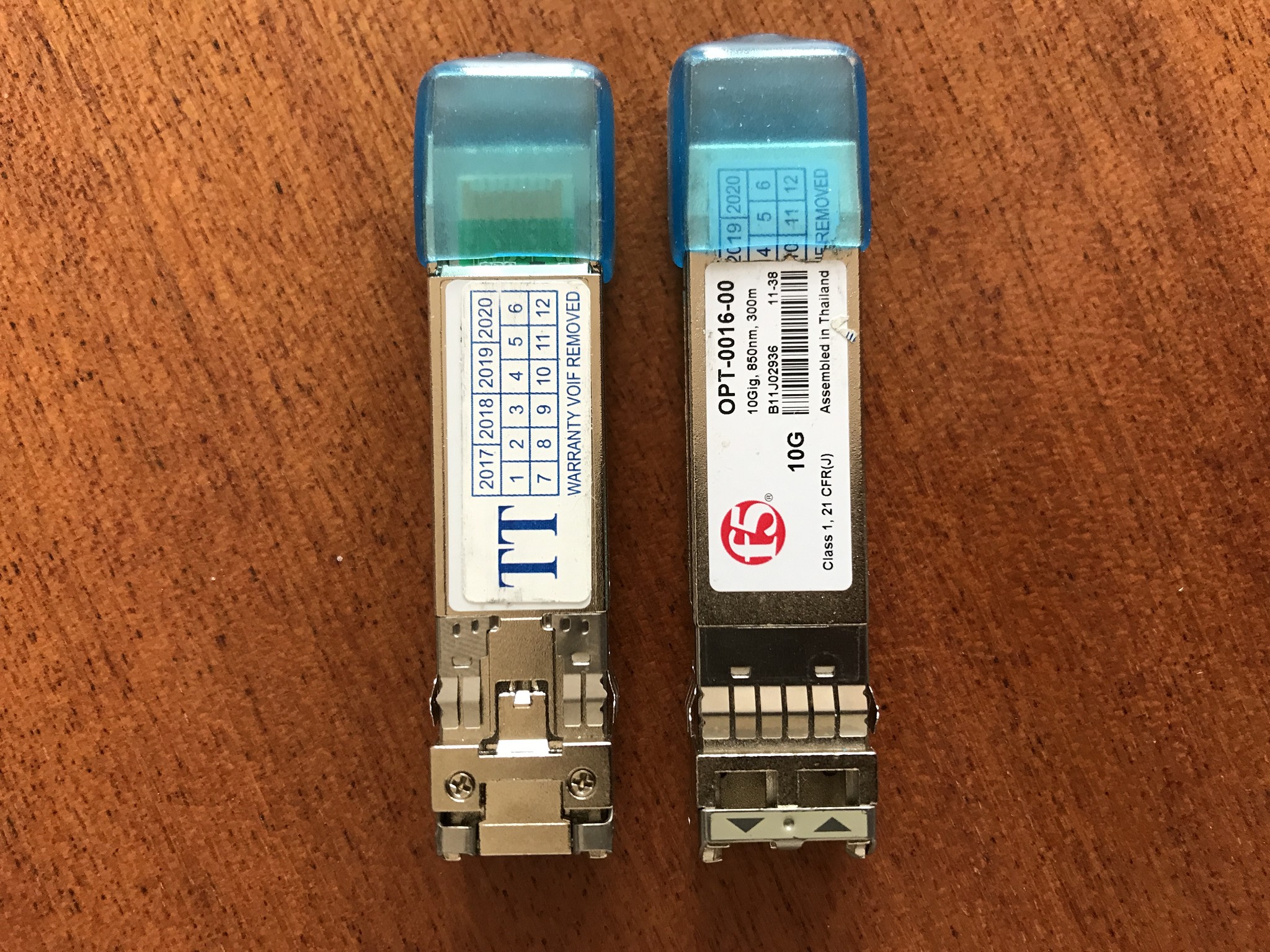 Two generic 10GbE fibre SFP+ transeivers. Model No