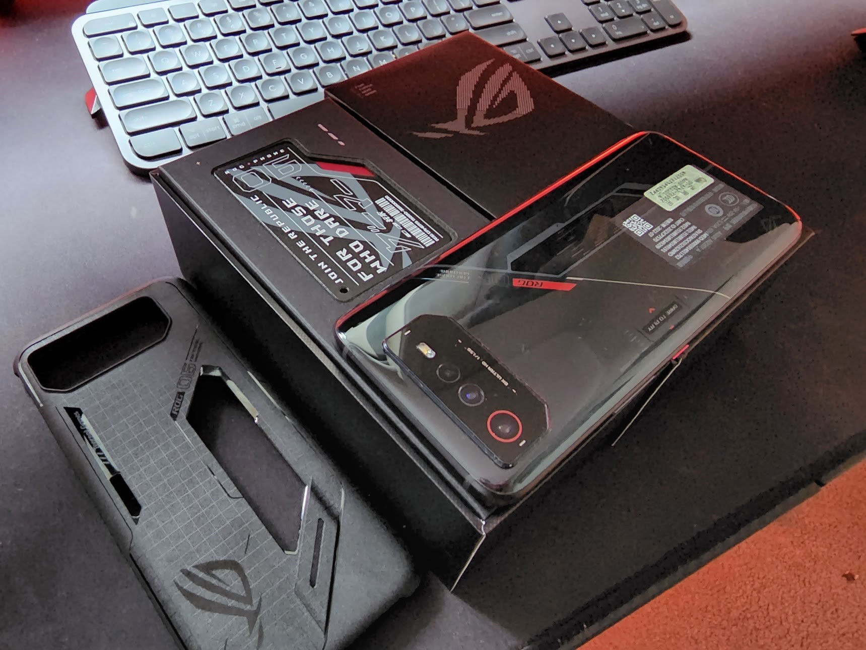 The newly announced Asus ROG Phone 6, in black colour and 12gb / 256GB variant.