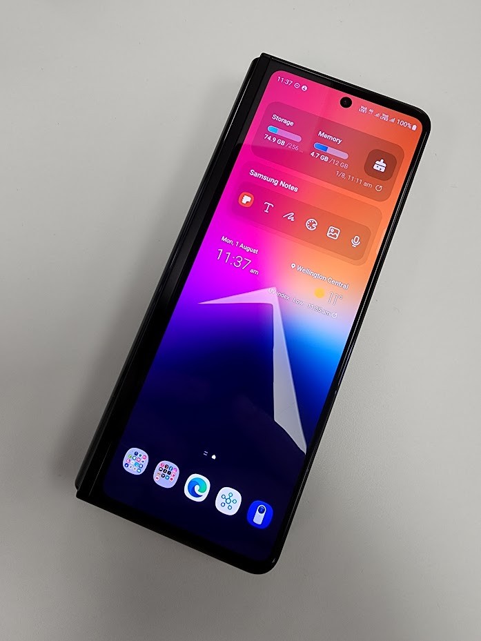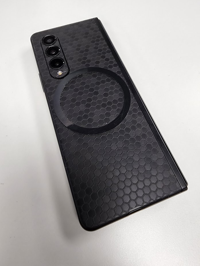 Almost pristine condition other than one minor scuff on the front bottom-right glass (not the interior display), as shown in photo and not visible in normal operation of the display. Rear has always had a skin on it so is as-new, and the edges are also as-new. The circle on the back is just a Magsafe magnet so I can attach it to my desk dock. It's attached to the skin rather than the phone itself, so will come off without damaging anything.