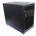 Cable Ways Floor Cabinet on castors – 18 rack units, two lockable Perspex doors and two fans.