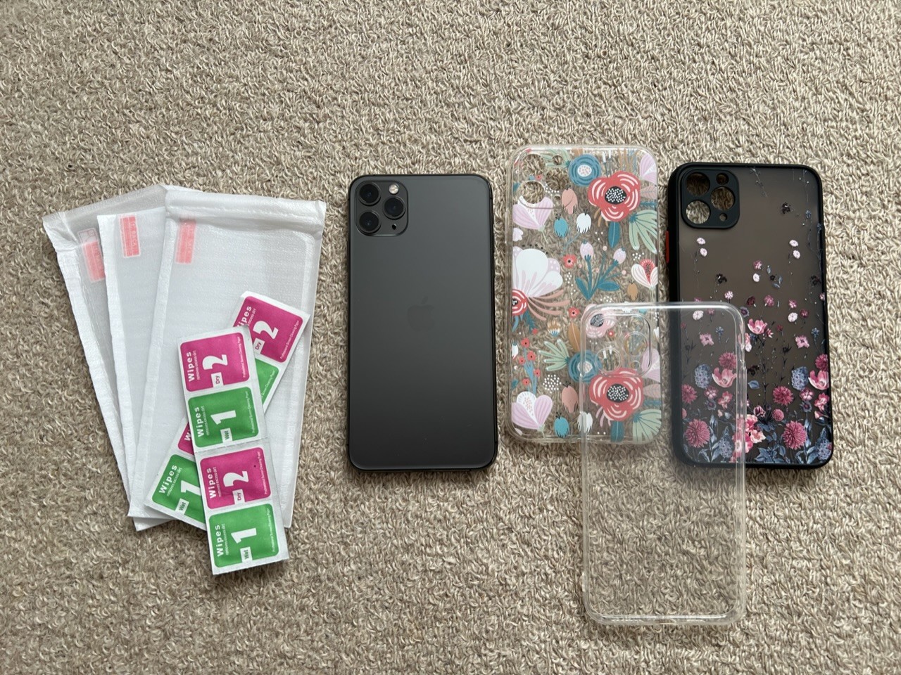 Comes with iphone + 3 cases + 3 new glass screen protectors.