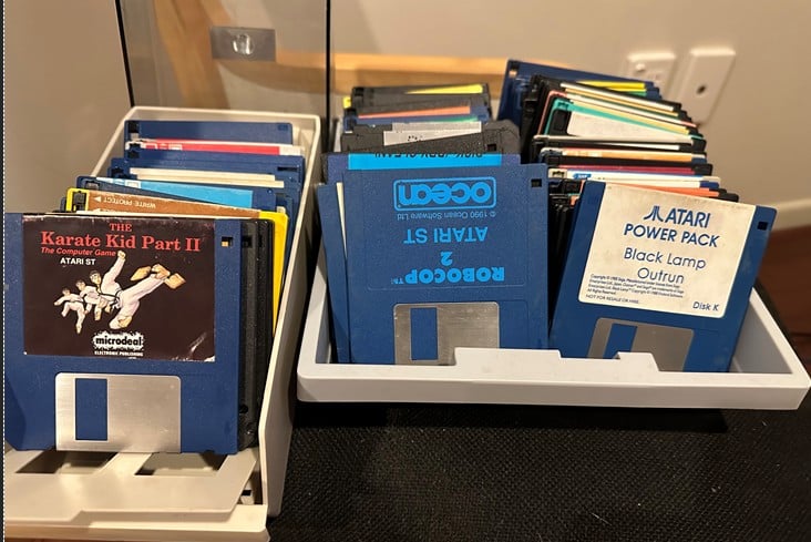 Mixture of original and non original floppies. Most appear to be for Atari ST's. Milage may vary as I haven't tested these.
