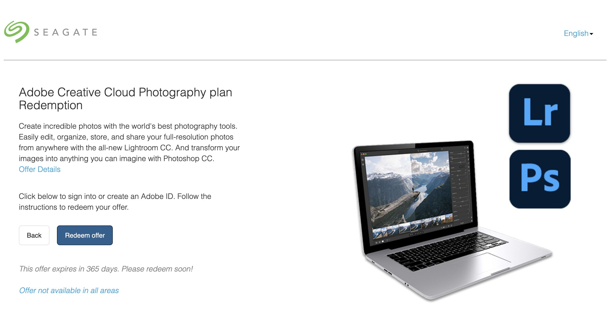 Back again with another Adobe (Seagate) freebie, I believe this one you can stack with an existing Photography plan.