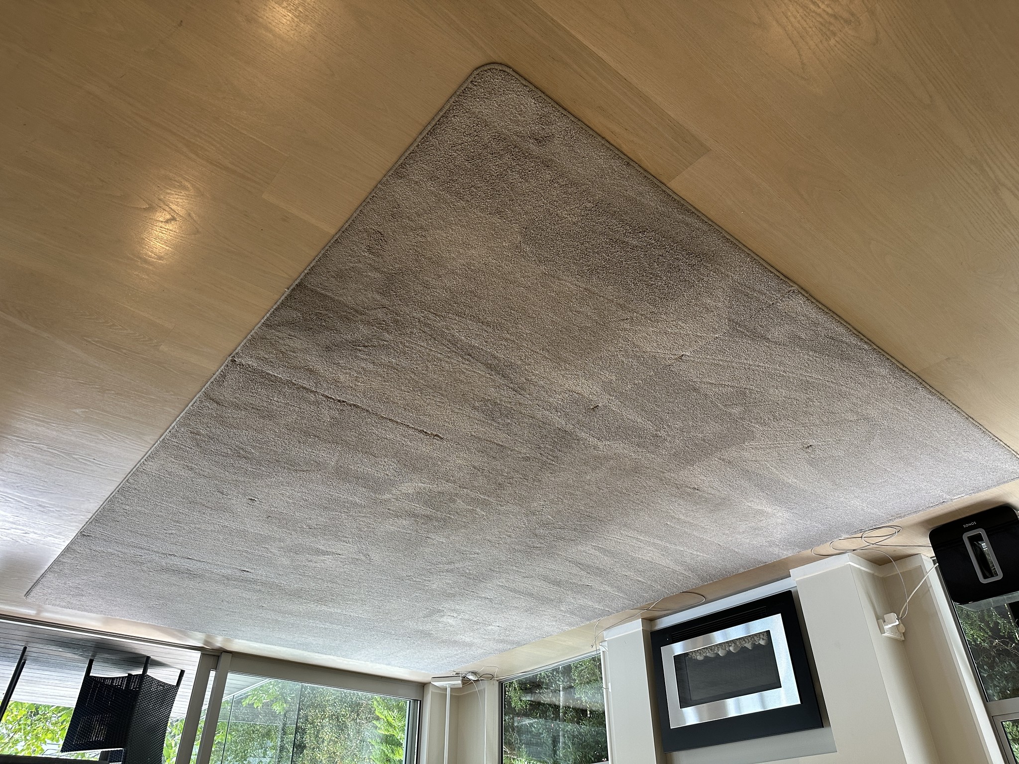 In good condition - no holes, stains etc - but it does have temporary indentations where furniture has stood and some traffic tracking. From non-smoking, no-kids, no-pets home. Would probably benefit from a once-over with a Rug Doctor machine.
