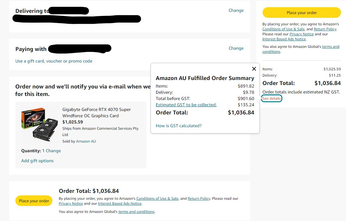 This card is a little over $1K but doesn't charge import fees where pretty much every other 4070 Super does on Amazon AU: https://www.amazon.com.au/dp/B0CQTNRTWR?ref=ppx_yo2ov_dt_b_fed_asin_title&th=1