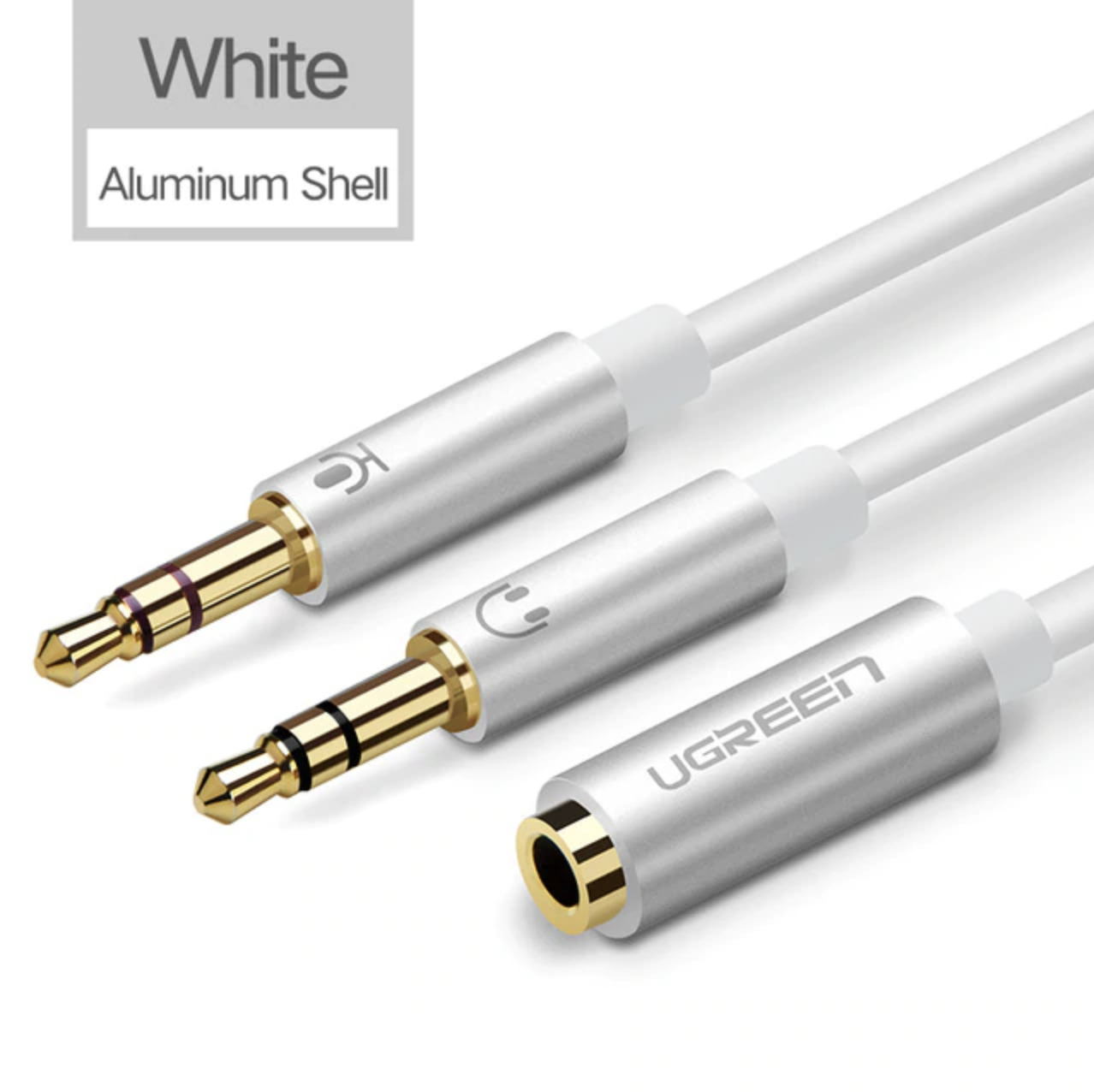 $4.88 UGREEN 3.5mm 4-pole male to 2 female (WHITE - plastic) splitter adapter [10789] (18)