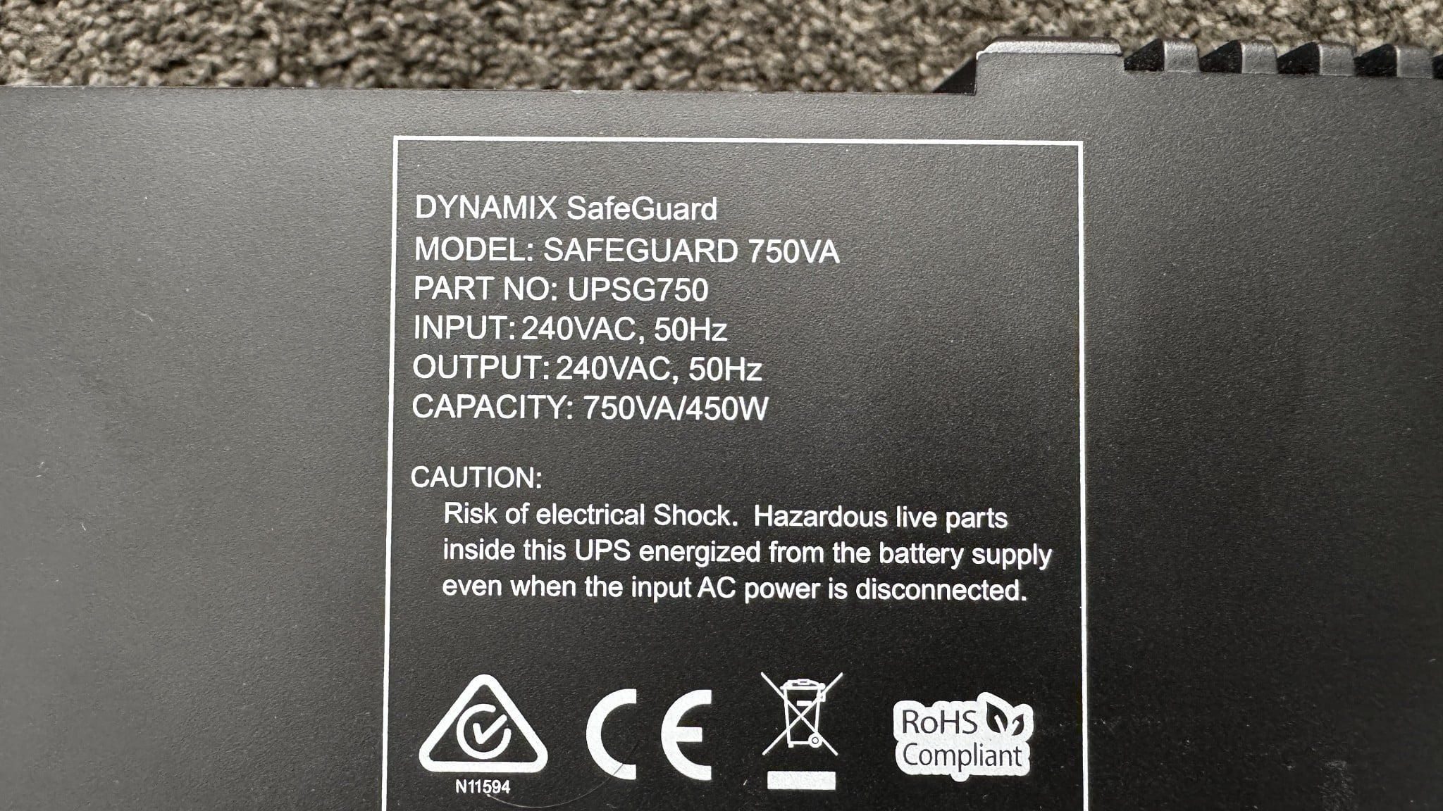 Full specs available at: https://www.pbtech.co.nz/product/UPSDNX1750/Dynamix-UPSG750-SafeGuard-750VA-450W-Line-Interact