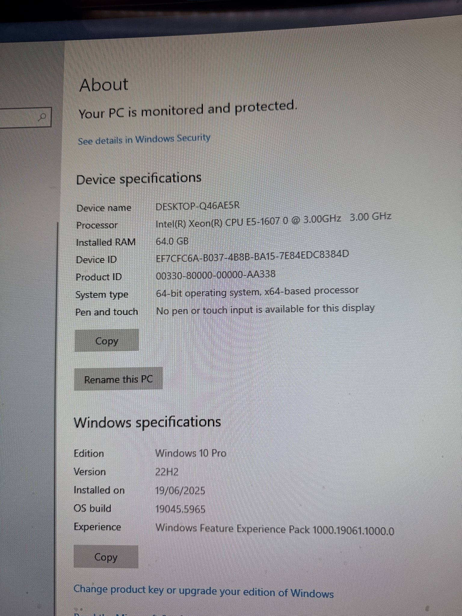 anyway its back to a genuine windows 10 pro and pointing out 64gb ram