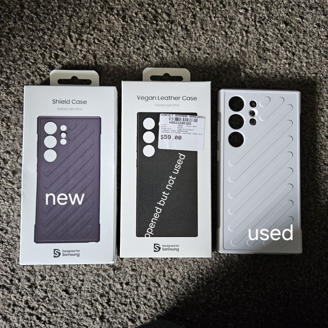 I have this Samsung Galaxy S24 Ultra up for grabs with 3 official Samsung Cases, looking for $1000 ono for it plus $15 for postage national wide, it was purchased on the 14th April 2025 so its only just coming up 5 months old.