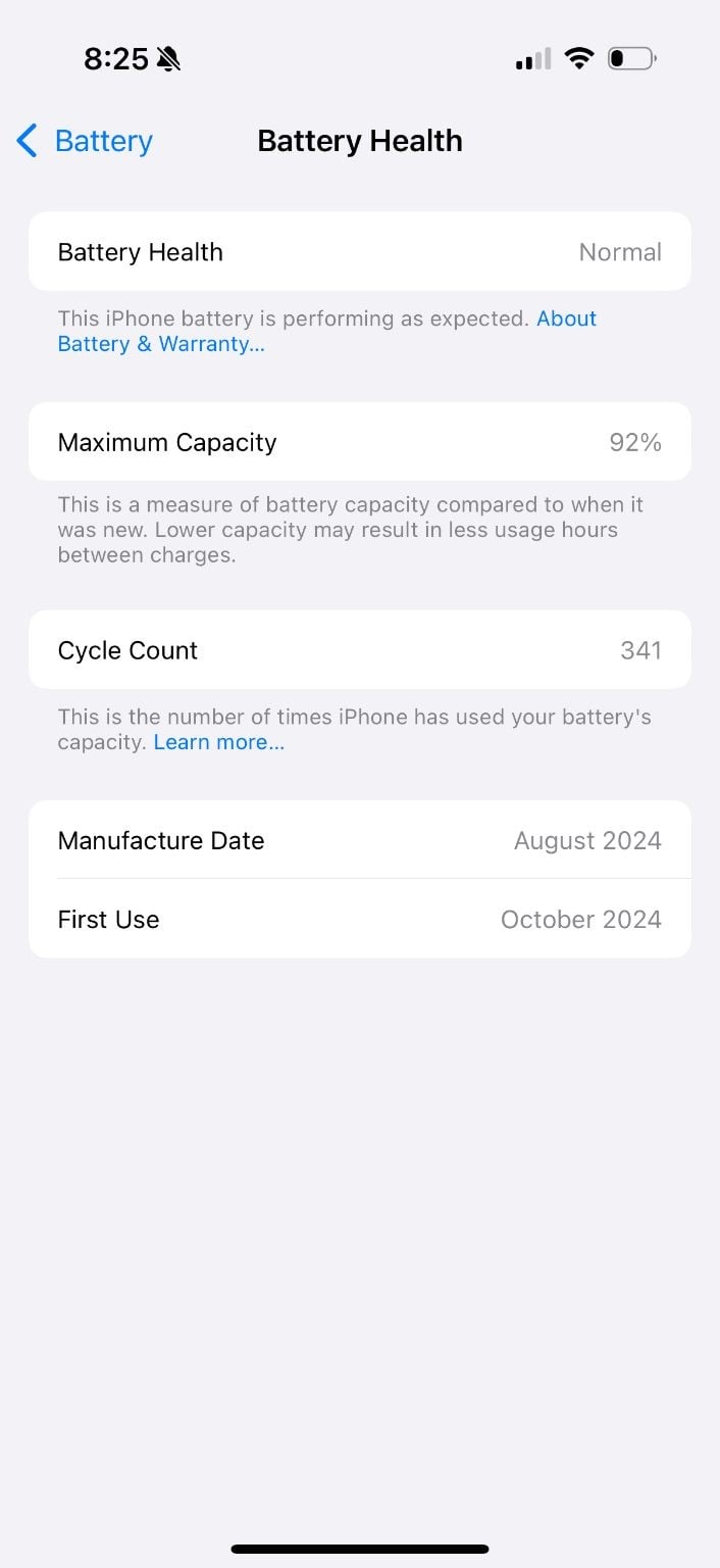Battery Health is Normal with 92% Maximum Capacity