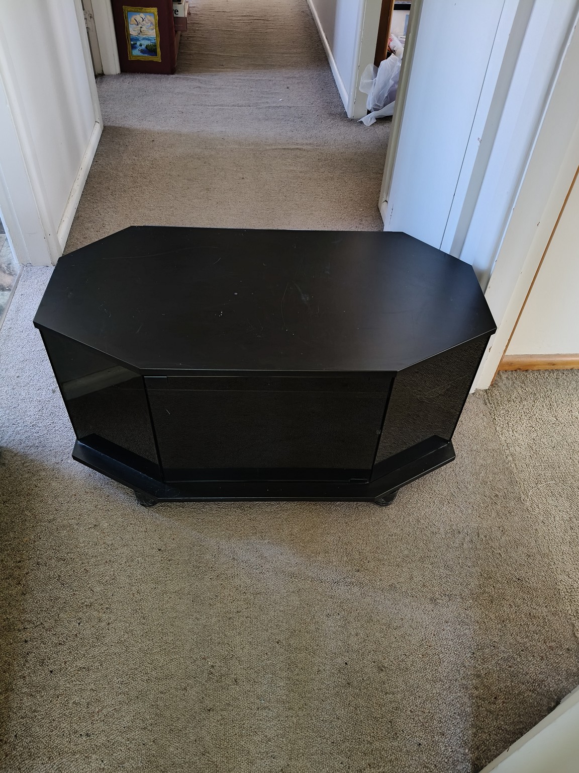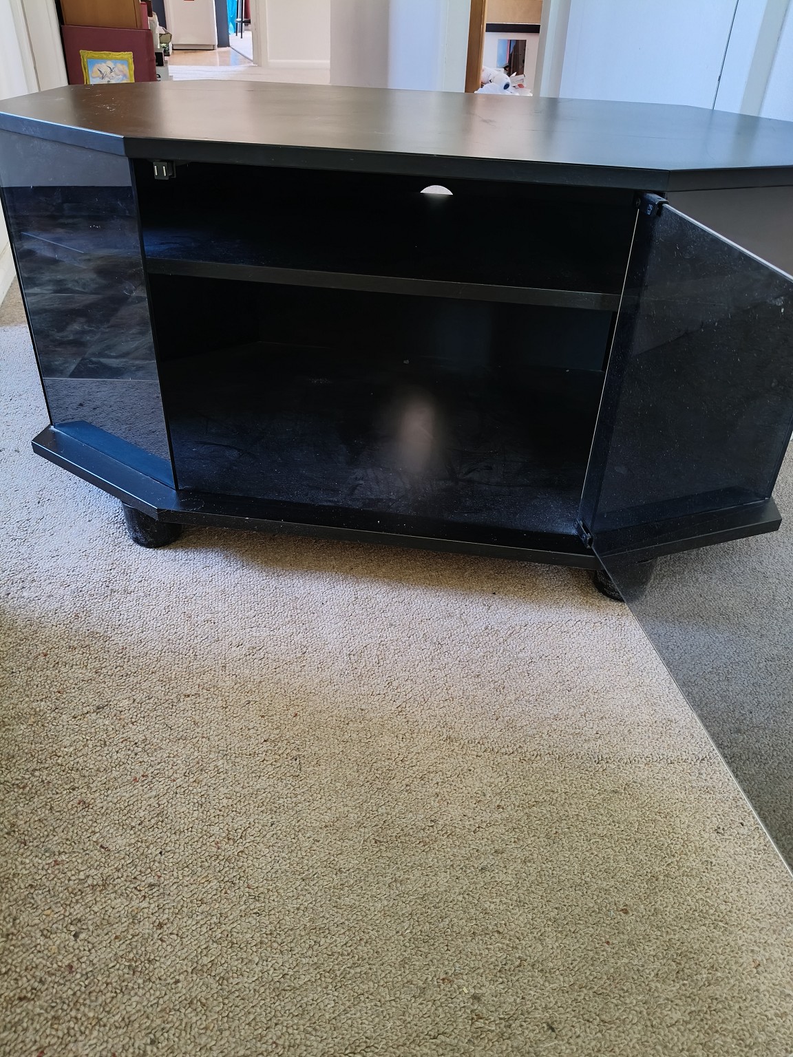 Older style TV Black Cabinet with smoke glass doors and 1 shelf