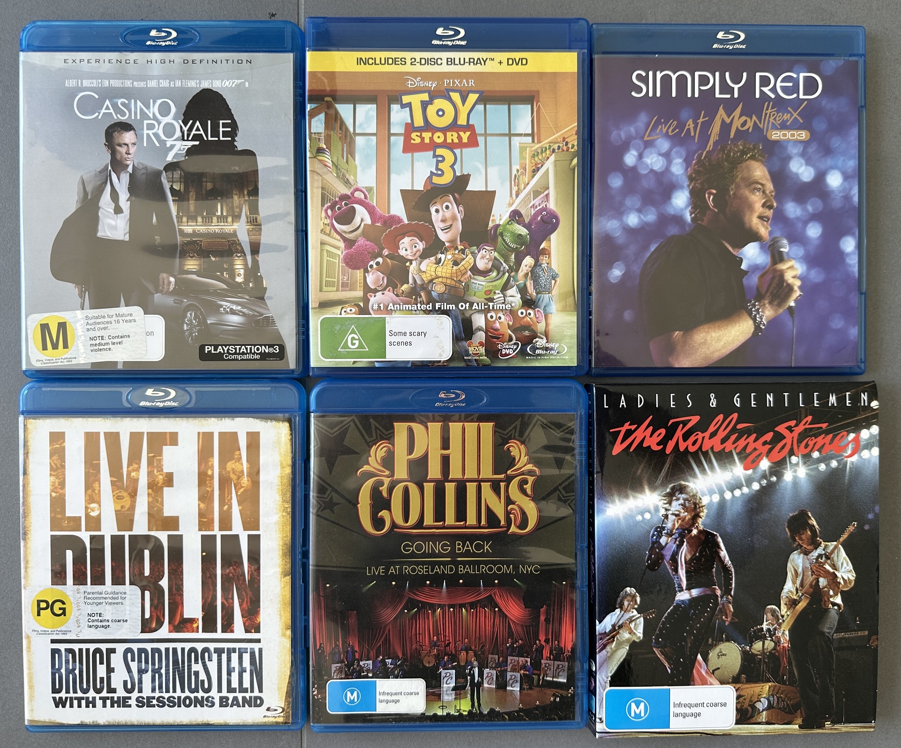Group 6: $20 for four music BDs and two BD movies. Toy Story 3 is three discs: BD movie and special features, BD of special features plus DVD of movie and features.