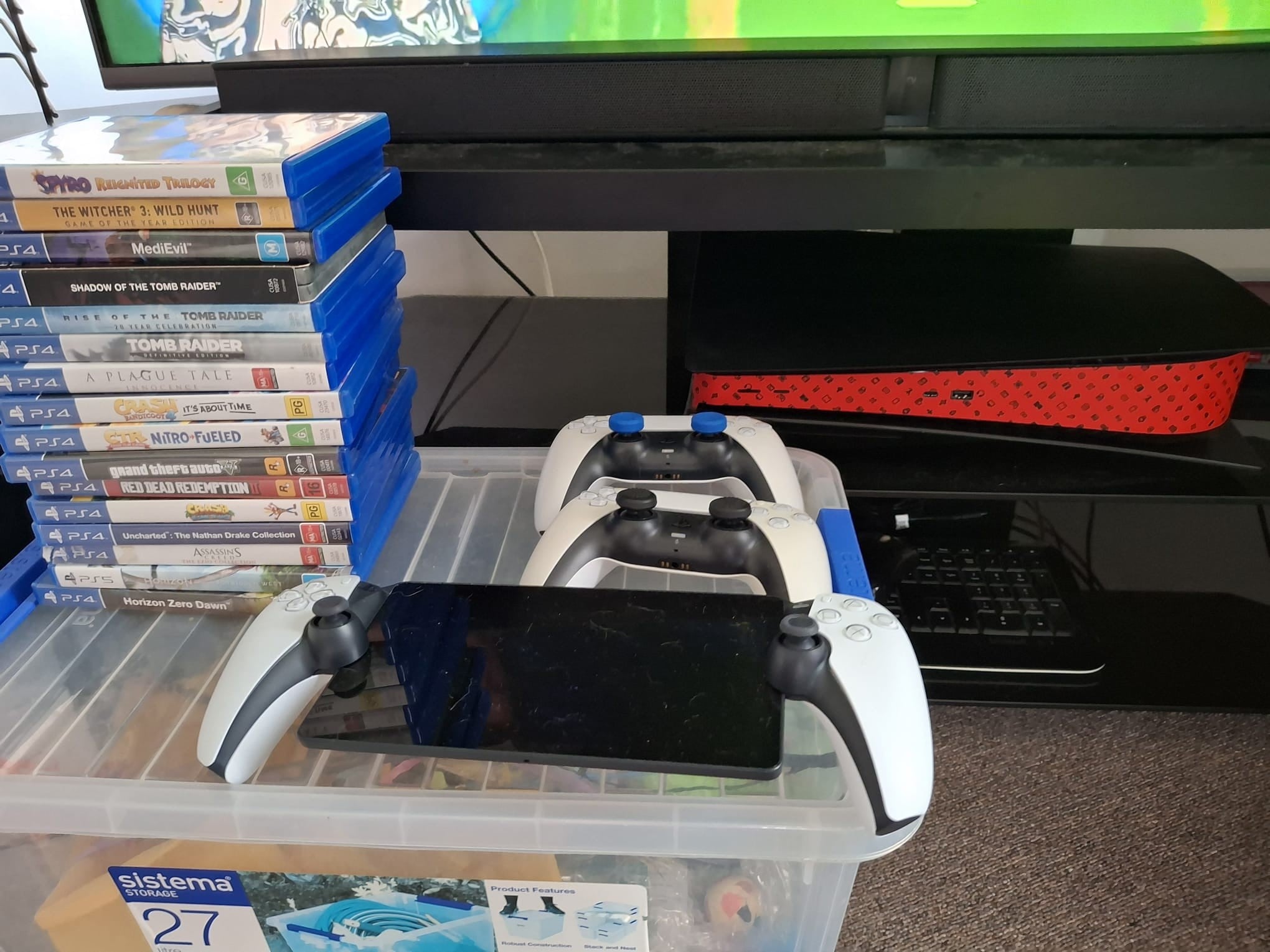 Two controllers although one has a bit of drift, if yo uare on this forum you probably know how to fix it, I don't, the PlayStation portal, and a bunch of games."