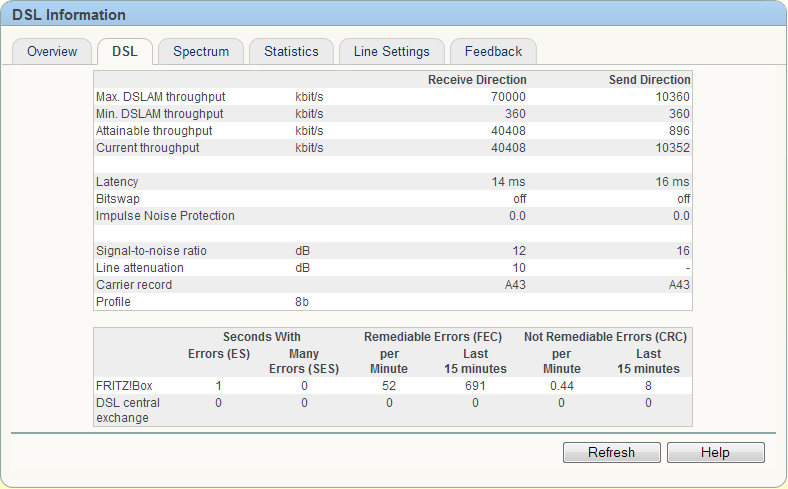 Downstream (VDSL2) 18.4 - 18.8 Mb/s