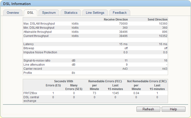 Downstream (ADSL2) 15.5 - 15.9 Mb/s