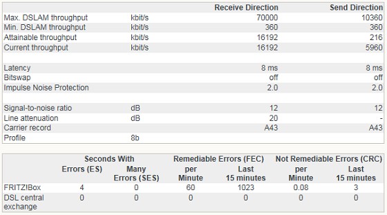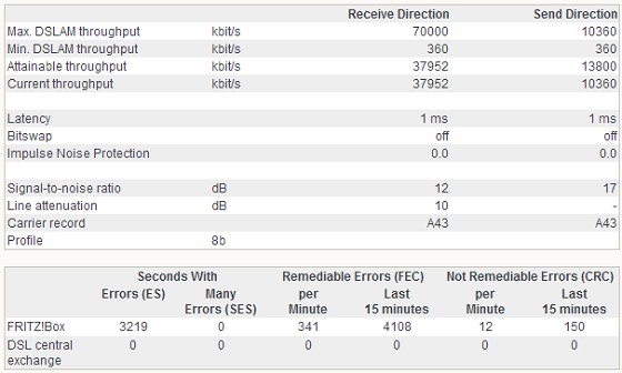 So here is my DSL information: