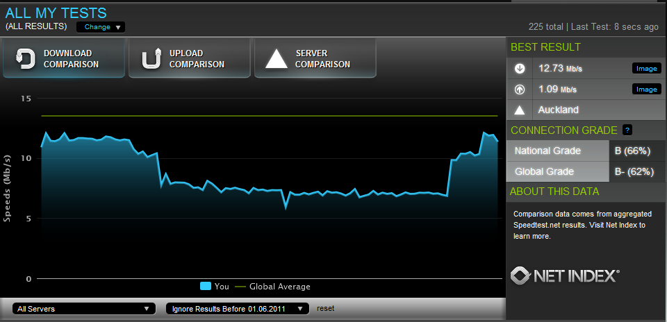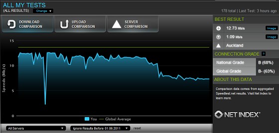 On average, loss of 5 Mbps, sometimes nearer to a loss of 6 Mbps.
