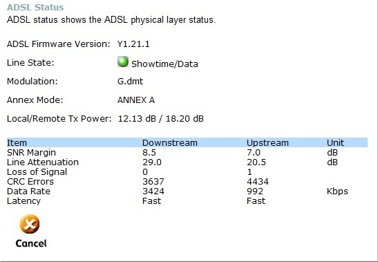 I know my modem is ADSL1 only, but I think it should be more than capable to achieve higher than 2.85mbits/sec (according to wikipedia, G.dmt has a theoretical downstream rate of 12mbits/sec).