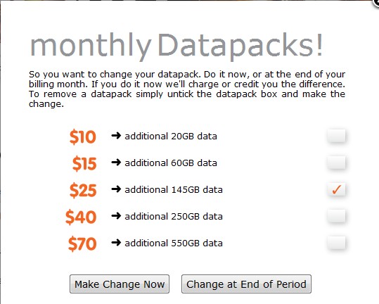 michaelmurfy: Something along the lines of "Offpeak every night for $20 per month" would be awesome for us, but yes, compared to other ISP's things are getting a tad expensive now.