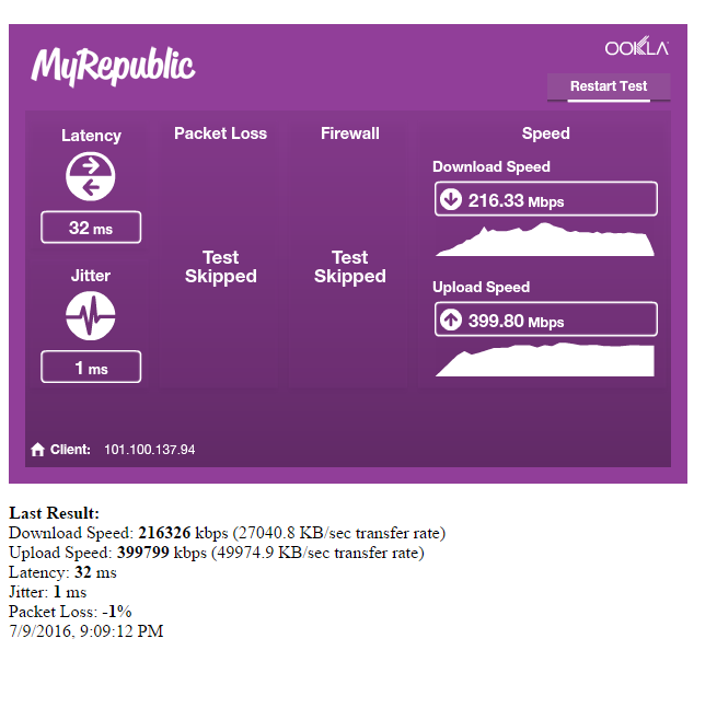 Some more outstanding MyRepublic speeds straight from Gigatown at 9pm on a Saturday.