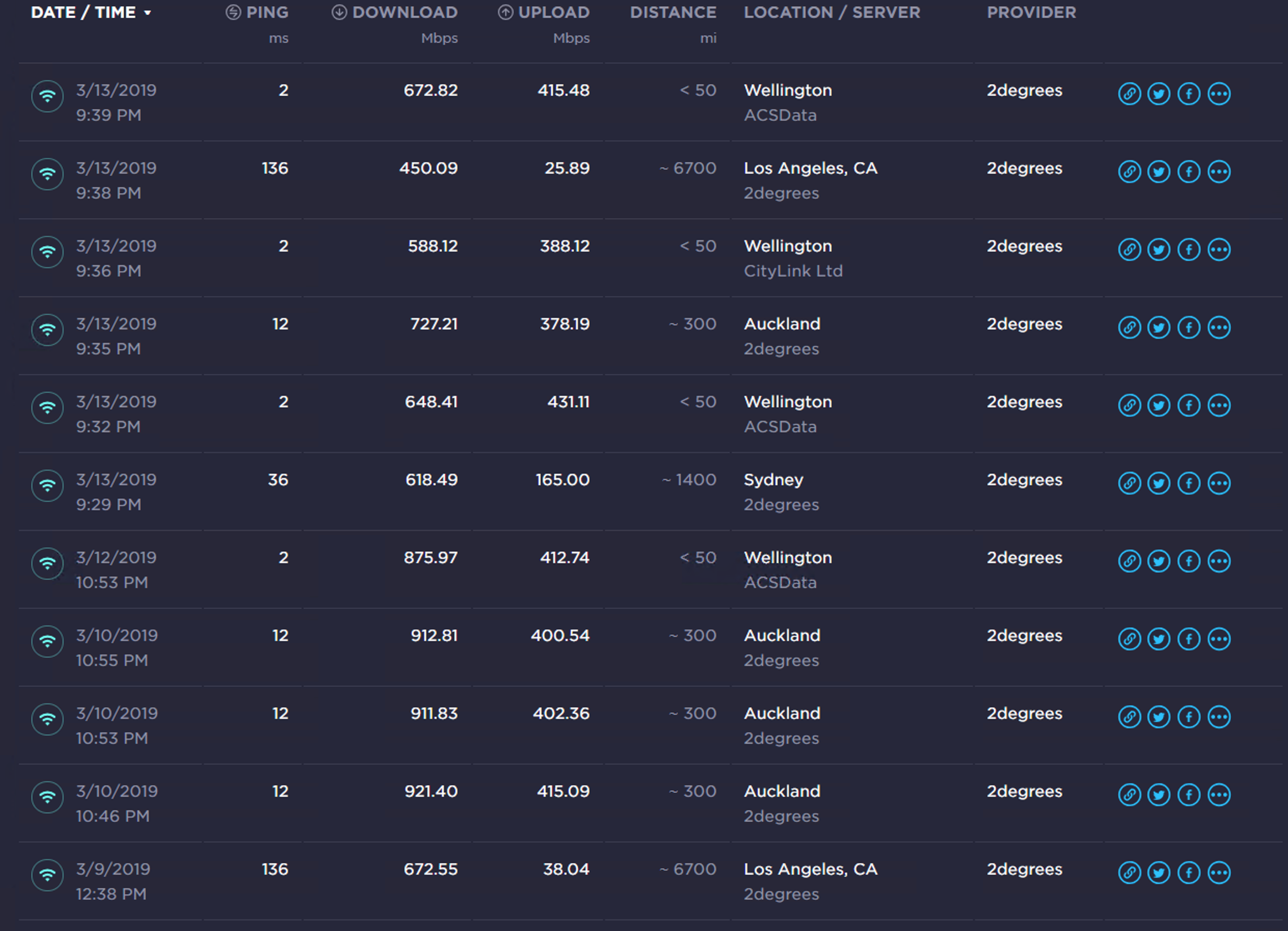 We have performed some extensive testing over the last few weeks with a number of individuals, after making a few changes, our speeds out of Wellington are performing well. Thanks for your input, patience and working with us.