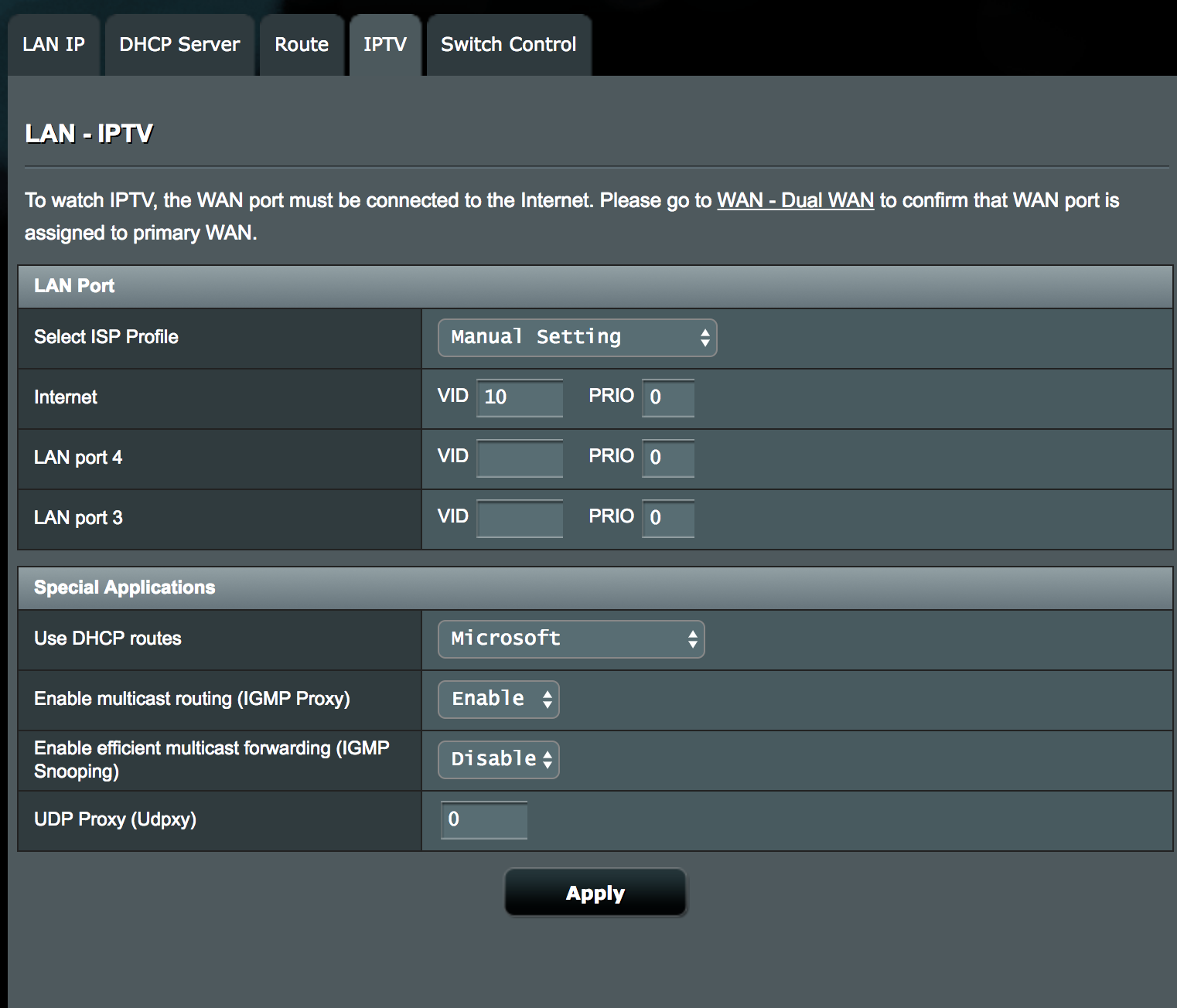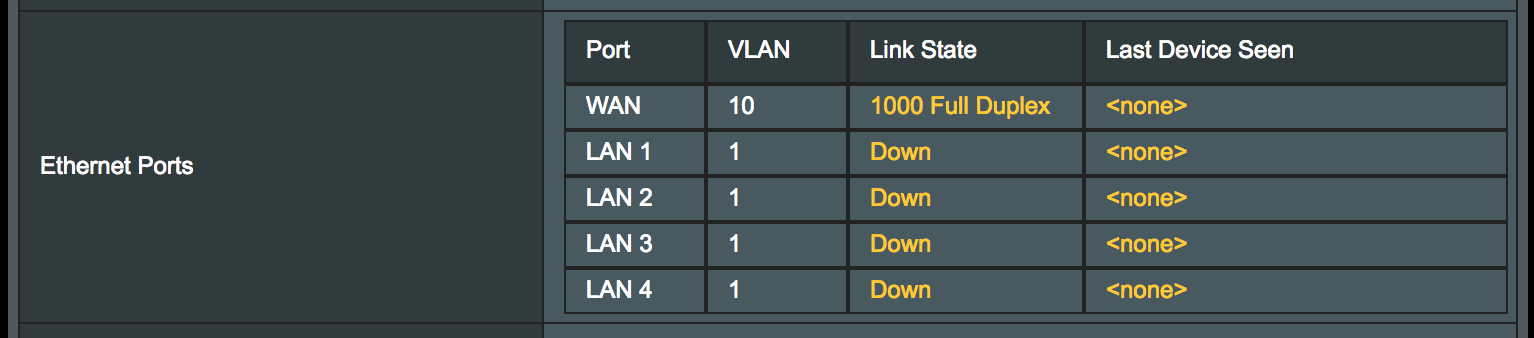 Which means the WAN port is now definitely set to VLAN 10: